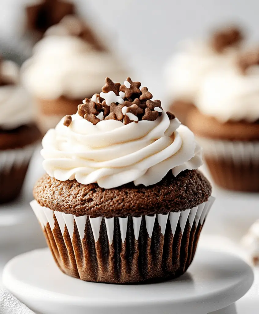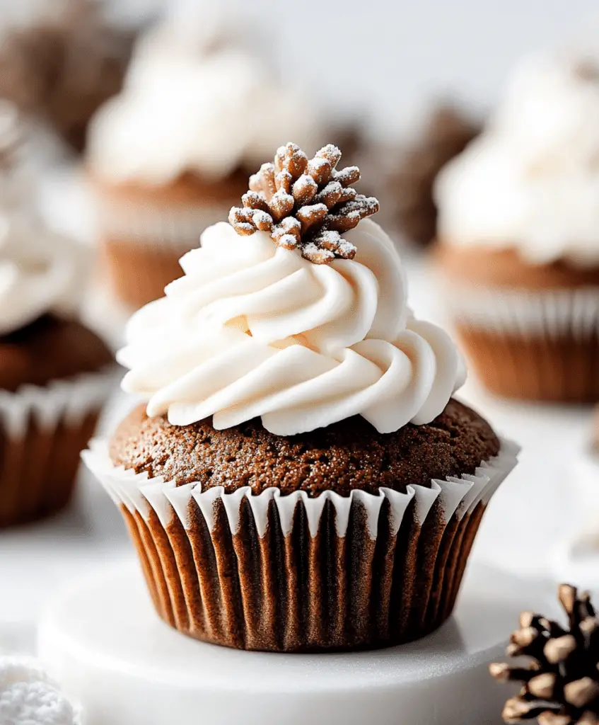 - Gingerbread cookie topper: Decorate the cupcakes with mini gingerbread cookies for extra holiday charm.